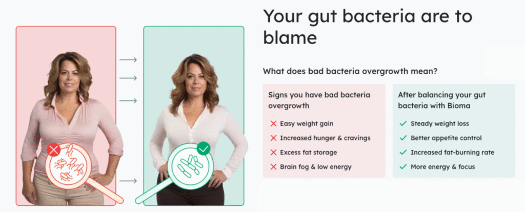 A major highlight is Bioma’s impact on weight support. Many users experience gradual, steady fat loss without needing to follow restrictive diets. That’s because when your gut is balanced, fat metabolism improves and cravings for sugar and processed foods often decrease naturally.