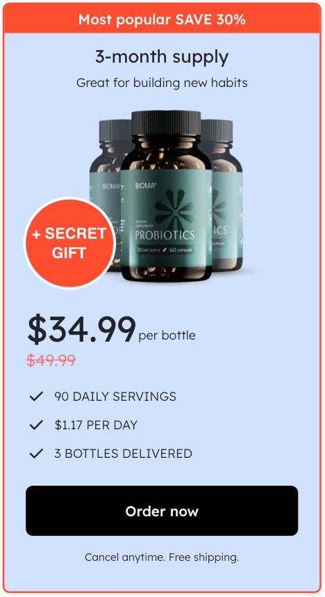 Bioma Probiotics is a premium nutritional supplement that blends prebiotics, probiotics, and postbiotics into one powerful formula. It’s specifically designed to restore gut balance, enhance digestion, and support healthy weight control.